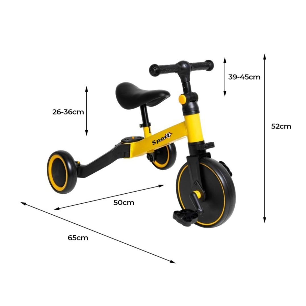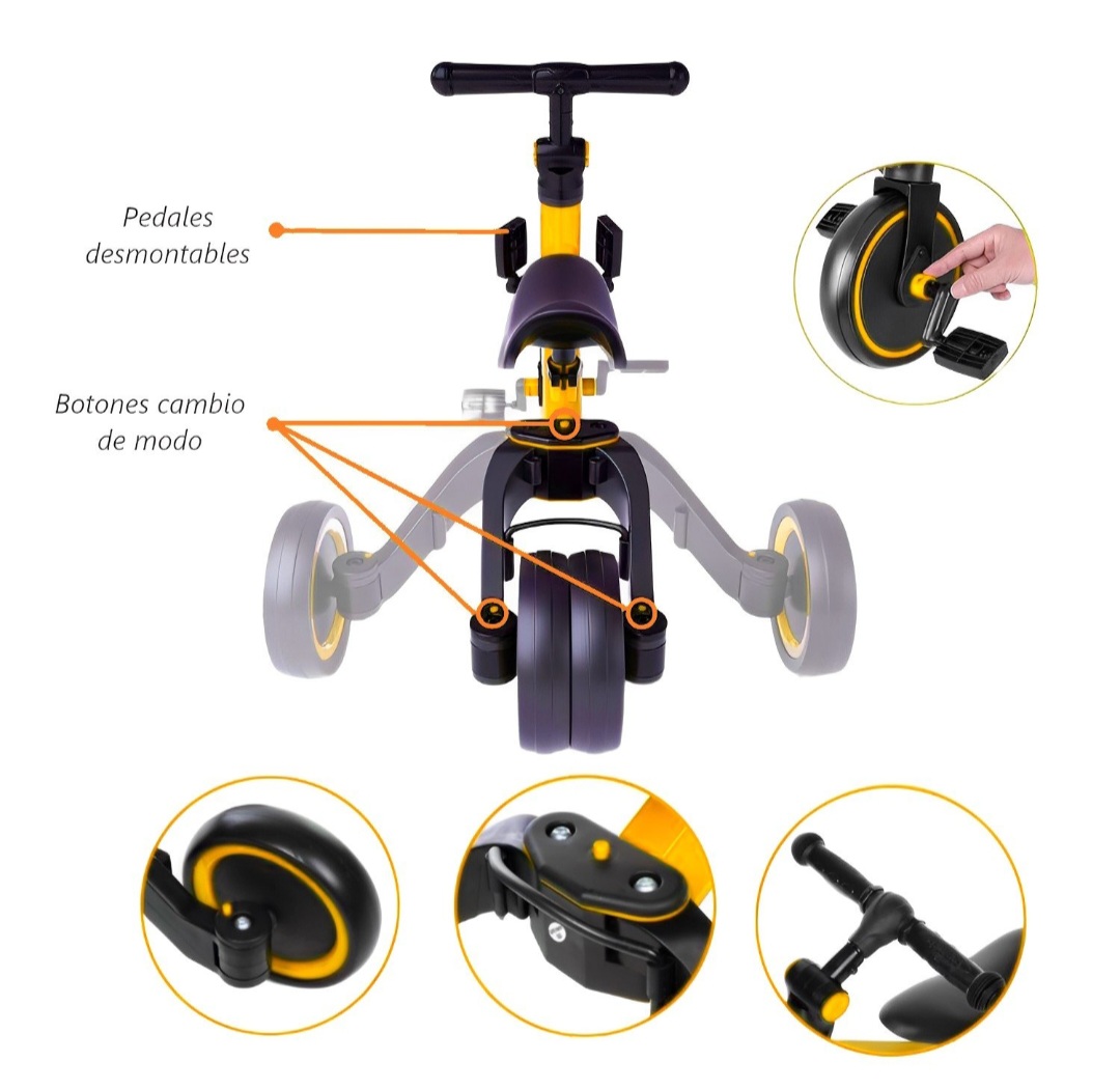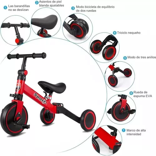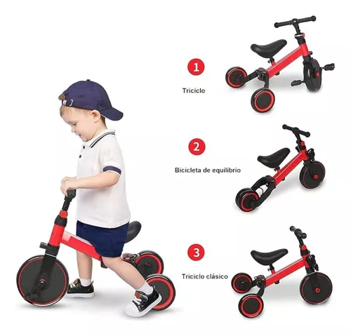 - Bicicleta Aprendizaje Corre Pasillo Triciclo Infantil 3 En 1 -Fácil de armado. - Triciclo ya que tiene 3 llantas. - Asiento regulable en altura y acolchado. -Manubrio ajustable en inclinación.