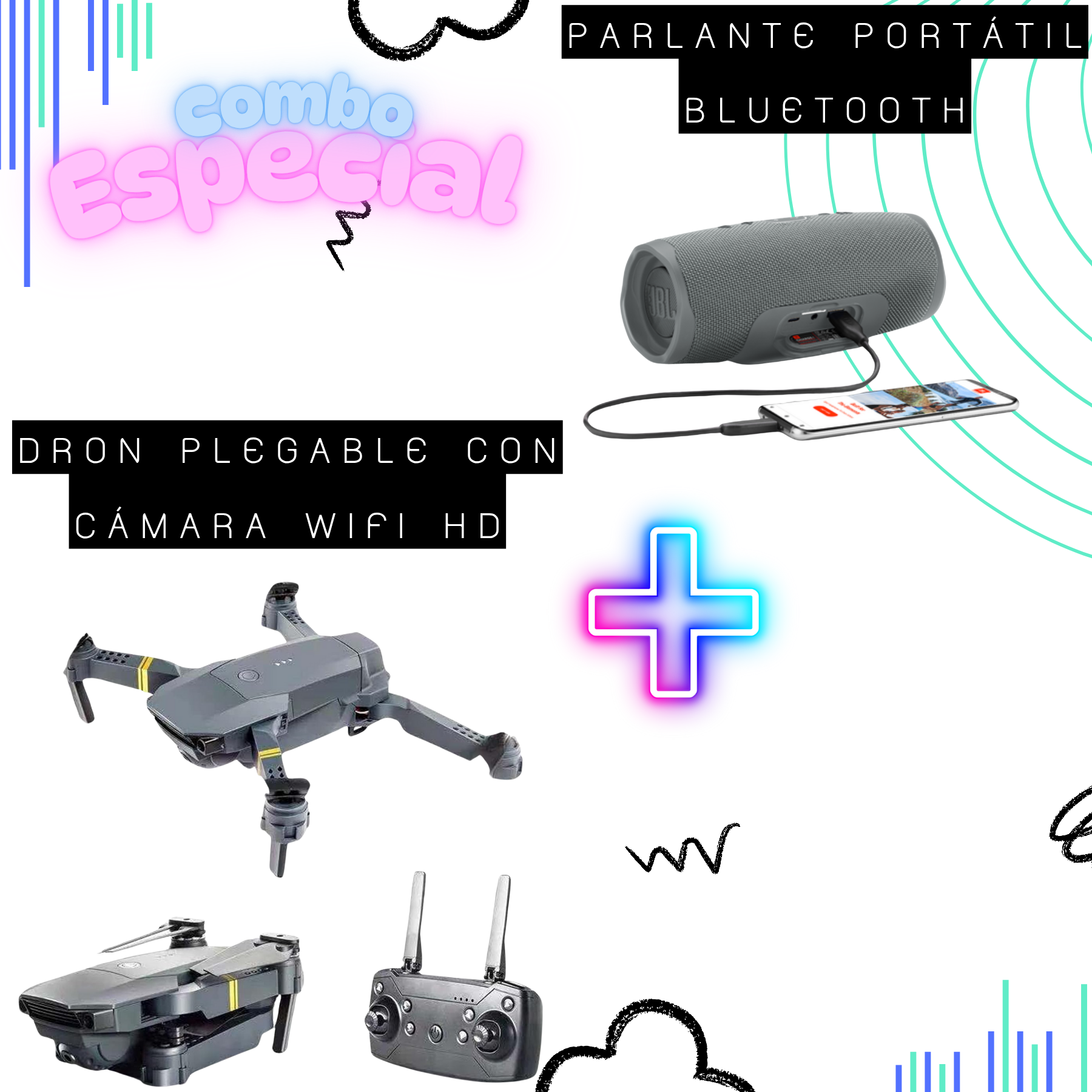 Combo Especial: Altavoz Bluetooth JBL y Dron Plegable