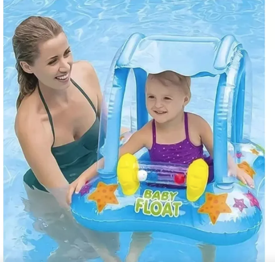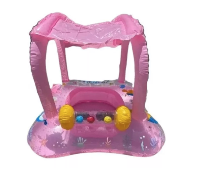 Flotador con Techo, trae añadida una agarradera inflable con pequeñas pelotas para entretenimiento.